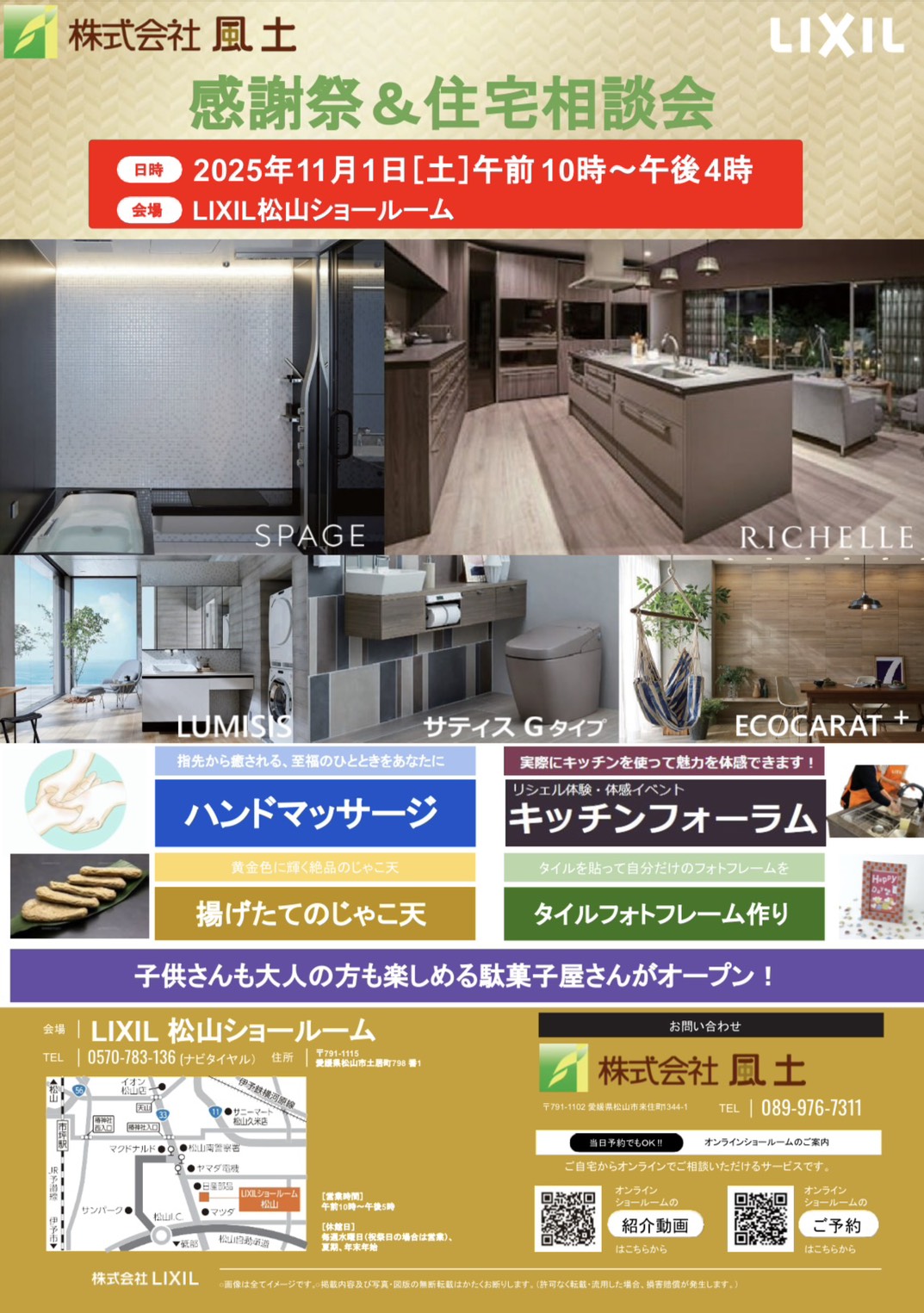 おうちづくりのハンドマッサージや揚げたてのじゃこ天、タイルフォトフレーム作りなど楽しい企画もたくさん!✨✨