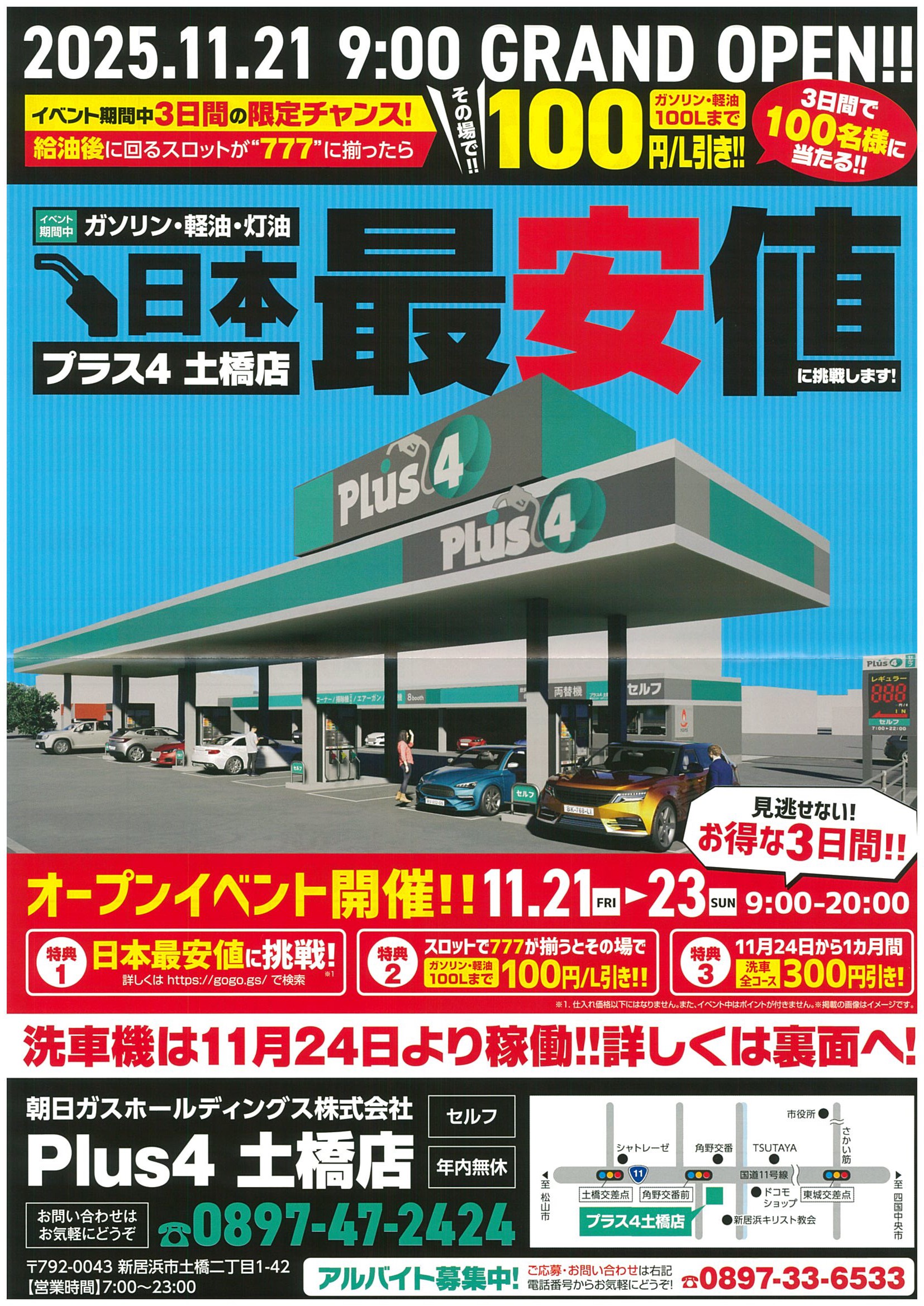 新居浜市土橋にて、PLus4土橋SSの竣工式が執り行われました✨
