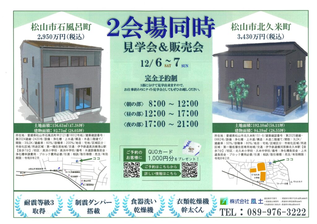 石風呂建売住宅・北久米建売住宅予約制見学会を開催します。