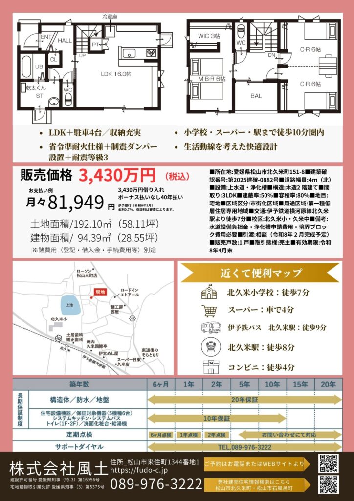 このたび、松山市北久米町にて新しい建売住宅が完成し、