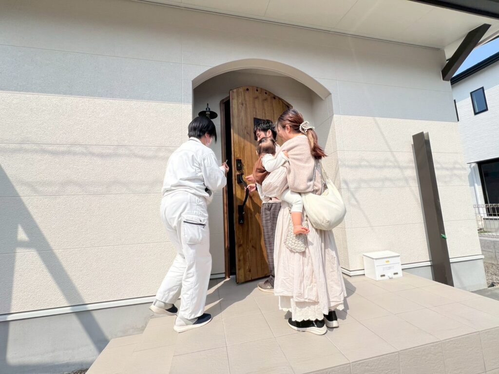 お施主様によるテープカット式の後は、工事用の鍵と新居で使う鍵の切替えです🔑