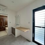 洗面所は家事がしやすいように、4帖の広々とした空間をとりました。また、衣類乾燥機の幹太くんを設置しておりますので、忙しい日常でも、家事が楽になるように考えております。